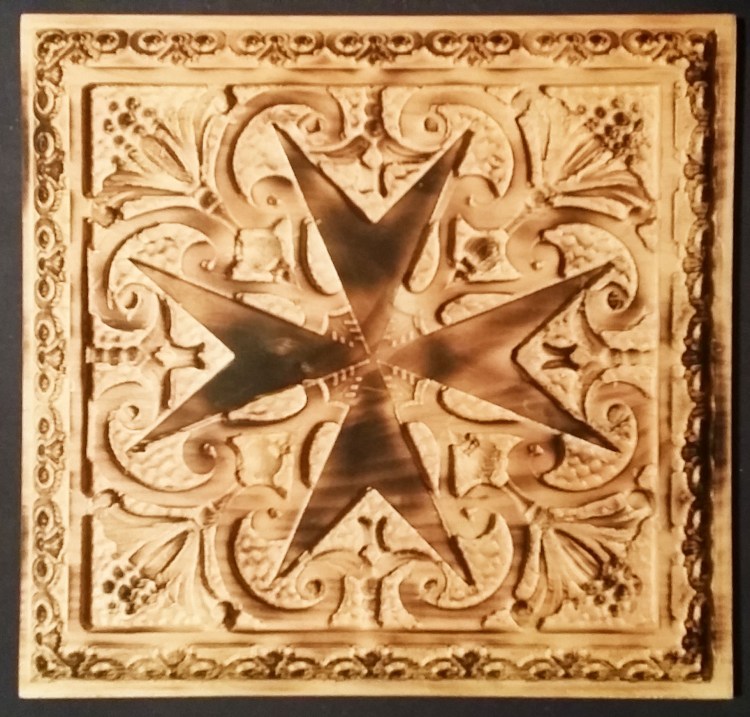Using a photo, I replicated the design of a Maltese cross on wood. This can be done with any photo on a variety of materials. It’s a wonderful way to display family heritage.