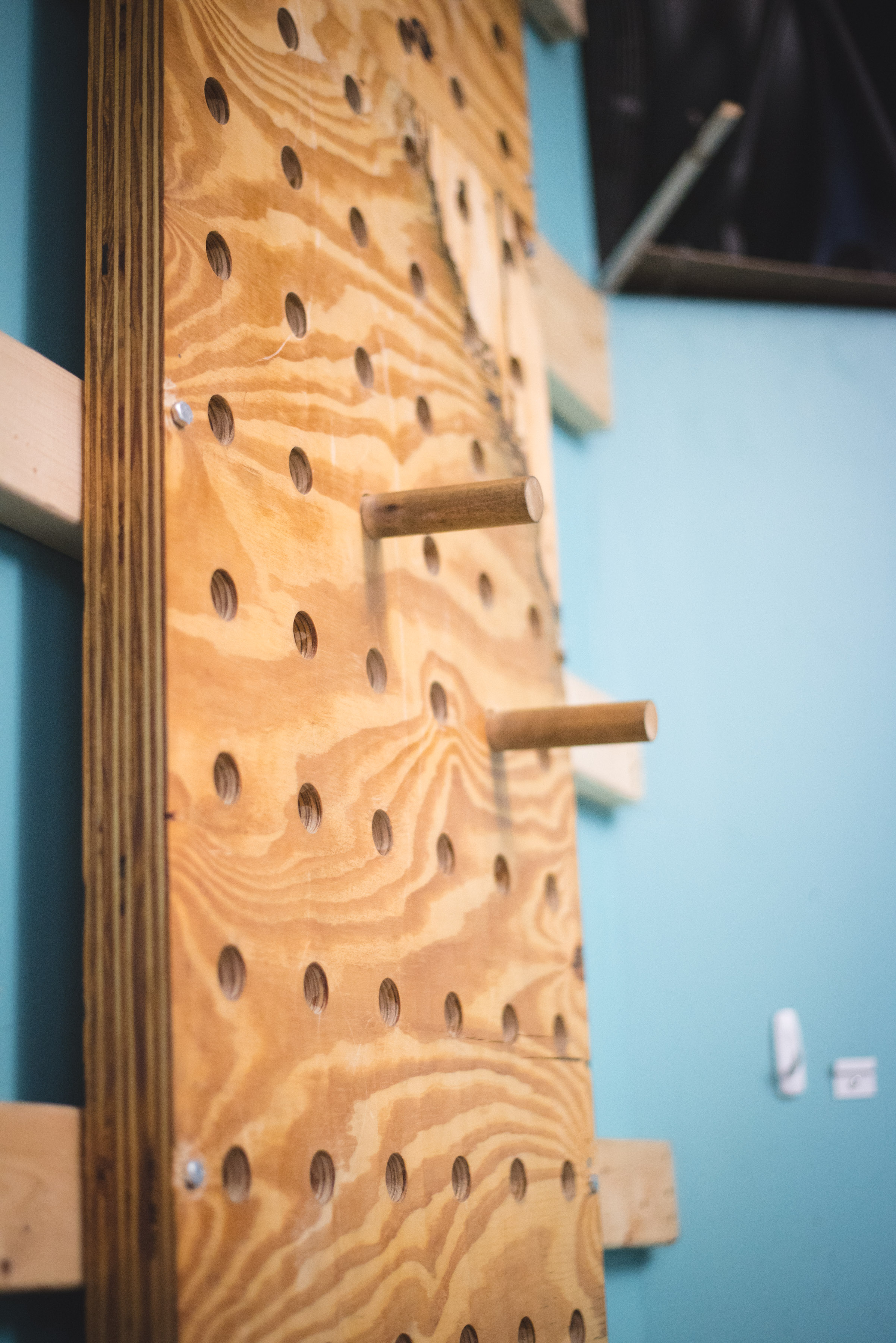 I have created custom pieces for CrossFit TreeTown, Mitten Fitness and Dexter Crossfit, Crossfit Kensington Valley, Lily Weightlifting, and Ann Arbor Functional Fitness. This included new nine- and ten-foot wall ball targets with the TreeTown logo, peg boards, barbell plates with custom weights, an outdoor bicycle rack, and more.